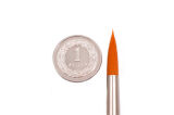 Pędzel wykonany z nylonu, w kolorze żółtym, okrągły. Skuwka pędzla wykonana jest z mosiądzu niklowanego, dzięki czemu metal nie rdzewieje.