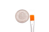Pędzel wykonany z nylonu, w kolorze żółtym, o równiej długości włosia. Skuwka pędzla wykonana jest z aluminium.