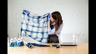 - Usuń kolor (opcjonalnie) - jeśli Twój materiał jest już biały / jasny, możesz zaczynać! Jeśli Twoja tkanina posiada ciemniejszy kolor, możesz go usunąć za pomocą wybielacza RIT DYE Color Remover Powder. Możesz także spróbować przefarbować istniejący kolor.