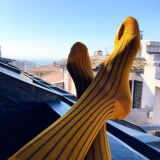 VICCEL / CELCHUK Knee Socks Shadow Stripe Mustard / Brown - Dwukolorowe podkolanówki